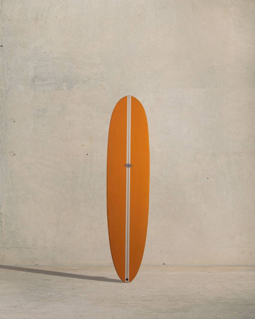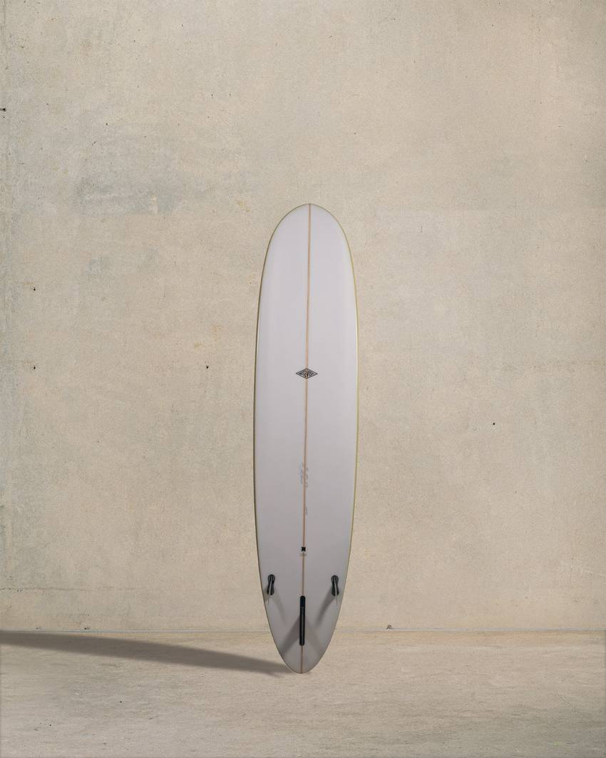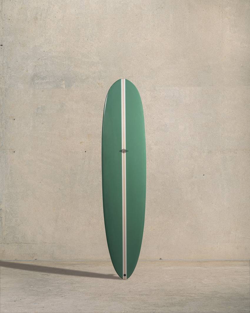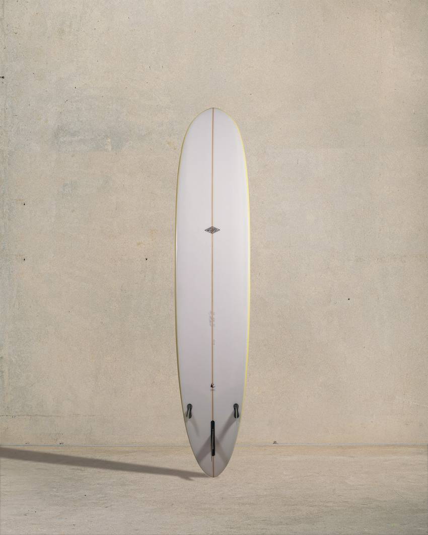 The high-performance longboard. Handles steep and barrelling waves. Tri-fin, double concave tail. Bevels. Nose concave. Drives fast and goes anywhere.