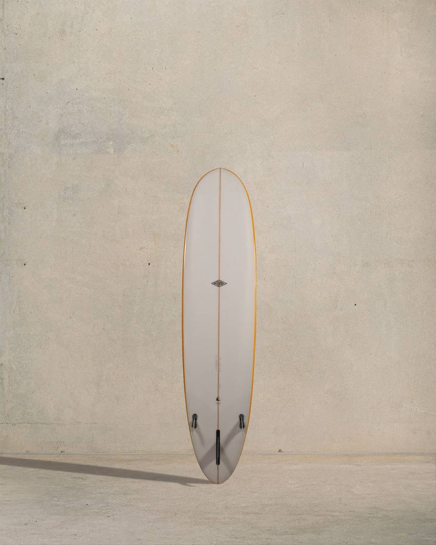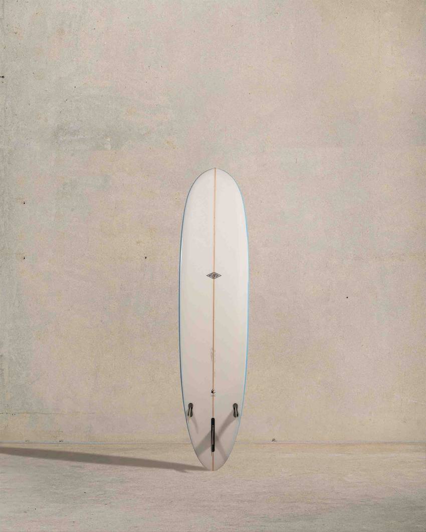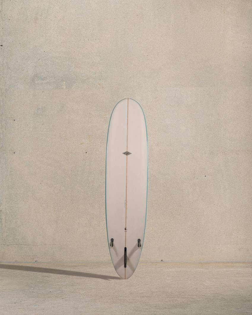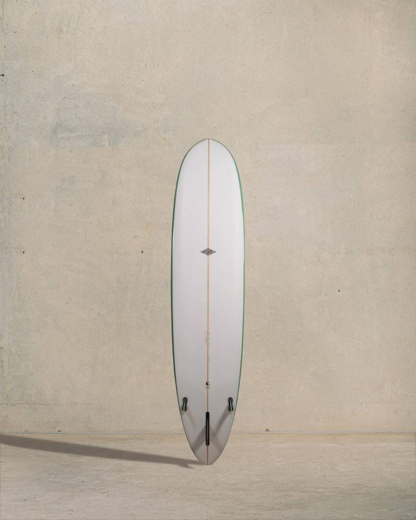 The high-performance longboard. Handles steep and barrelling waves. Tri-fin, double concave tail. Bevels. Nose concave. Drives fast and goes anywhere.
