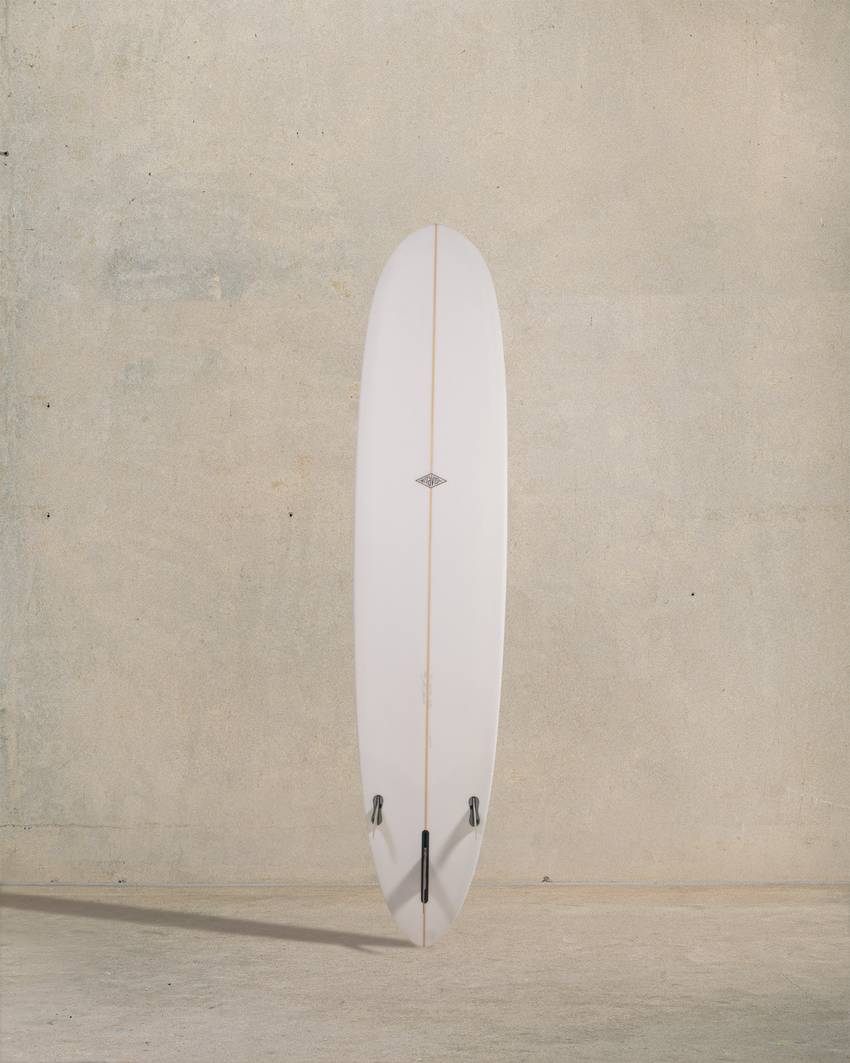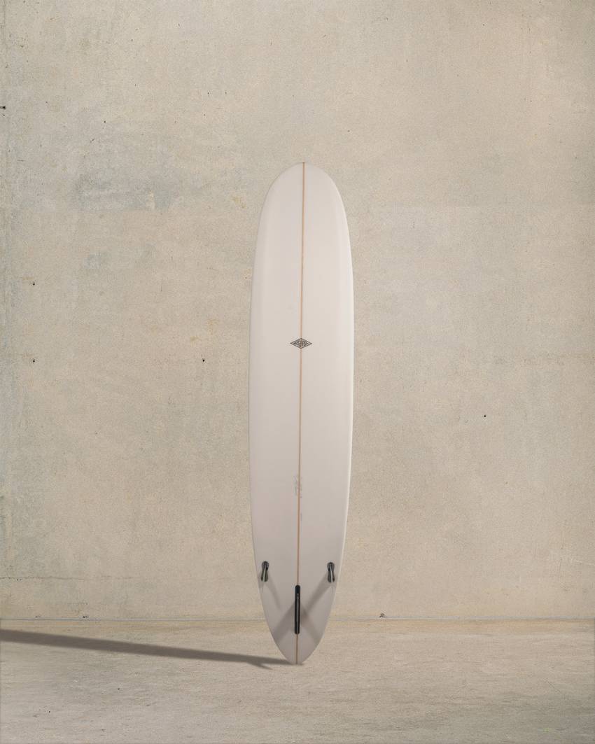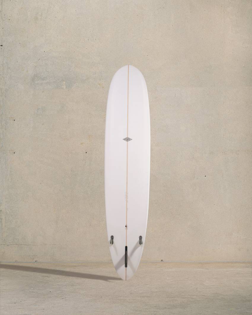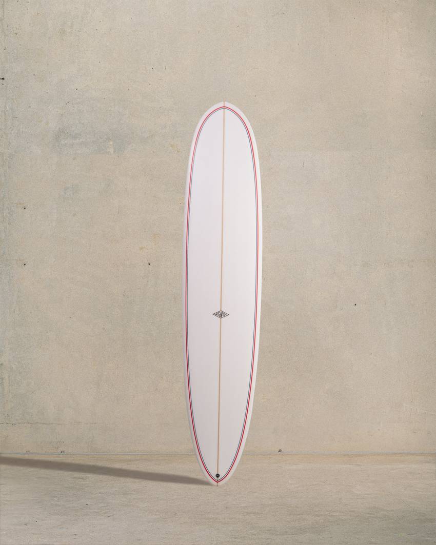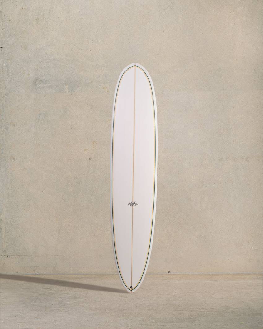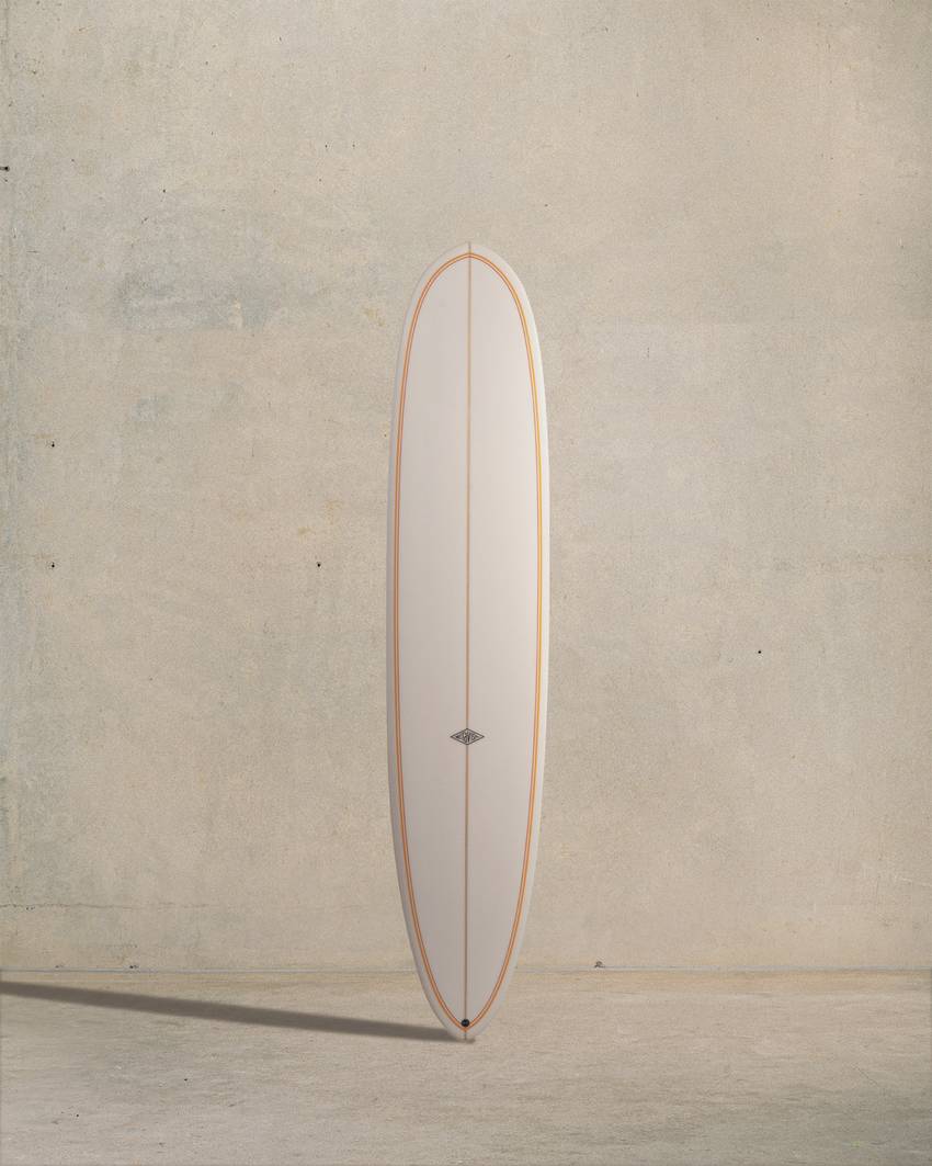 The high-performance longboard. Handles steep and barrelling waves. Tri-fin, double concave tail. Bevels. Nose concave. Drives fast and goes anywhere.